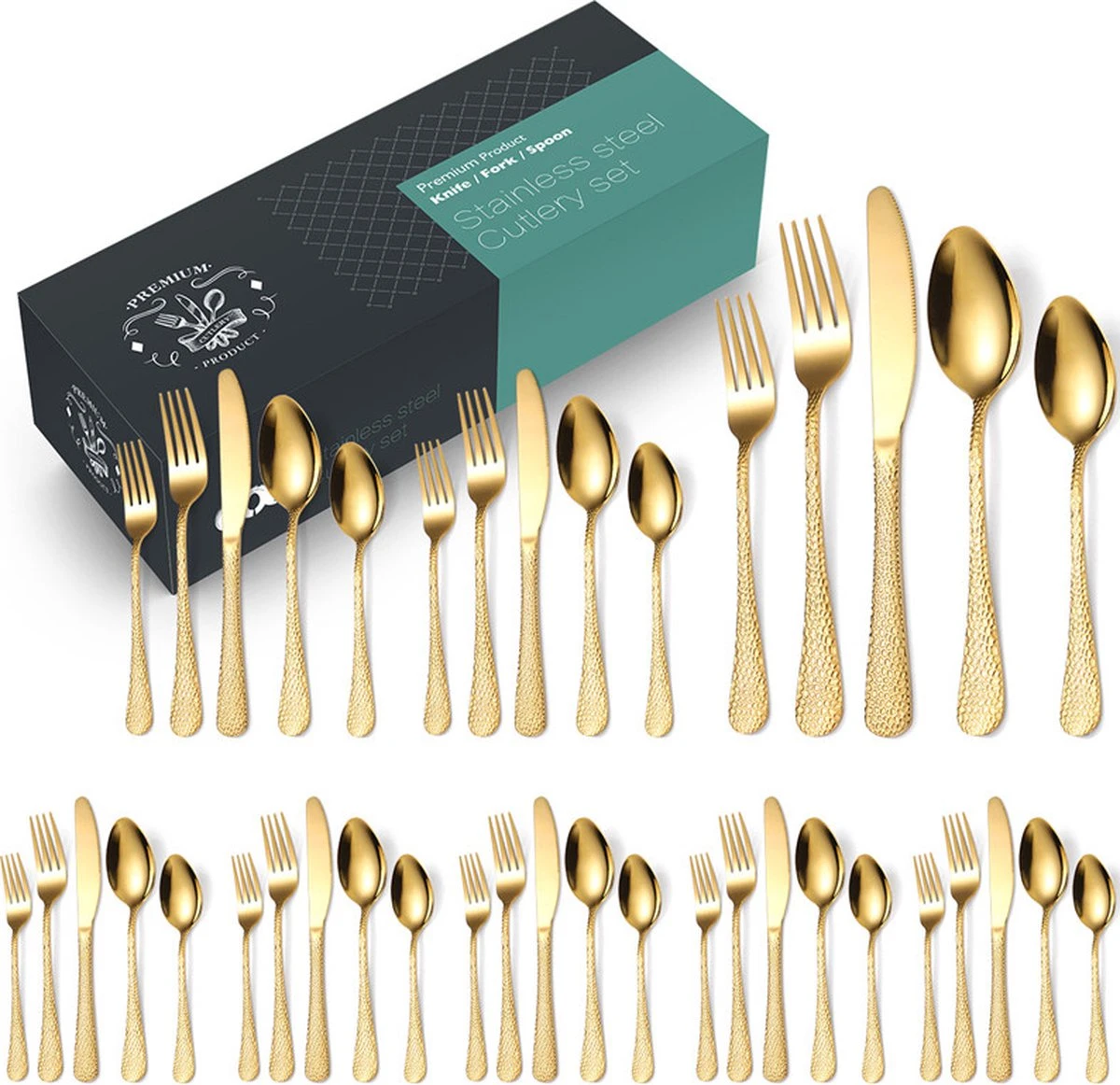 40-delige RVS Snakeskin Bestekset- Geschikt Voor8-personen -trendy Design-goud