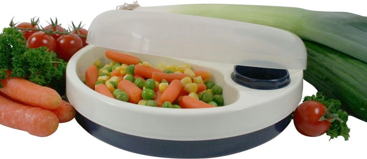 Dit 2-vaks warmhoudbord houdt uw maaltijd langer warm, door het reservoir te vullen met heet water. Het bord is vaatwasmachinebestendig, geschikt voor in de magnetron en wordt compleet geleverd met deksel.