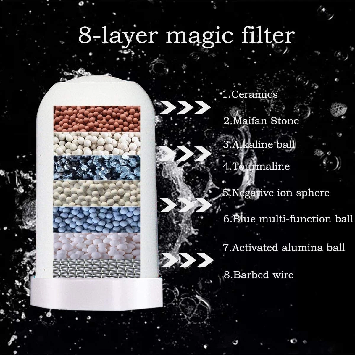 Hoogwaardig materiaal: het waterfilter bestaat uit gemineraliseerde baldeeltjes – vermindert effectief 99% geuren, chloorsmaak, stof, ziekteverwekkers, roest, troebelheid, zware metalen en schadelijke sedimenten, terwijl de mineralen goed en origineel zijn voor de menselijke gezondheid.