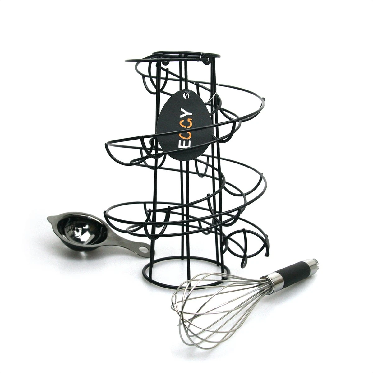 Gemakkelijk alles bij de hand op je aanrecht voor het perfecte eitje bakken, kloppen of scheiden. Door de garde en de eierscheider die erbij is geleverd is er genoeg keuze welk ei je vandaag gaat klaarmaken en dat allemaal in 1 stijl van je eierhouder.