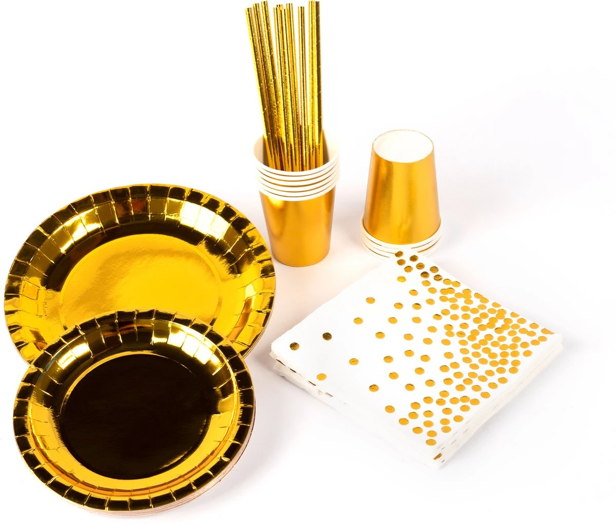 Op een feestje is mooi servies natuurlijk onmisbaar! Of je nu gaat voor een vrijgezellenfeest, verjaardagsfeest, een Sweet 16 of een bruiloft, met de gouden wegwerp servies set van Festivz zit je altijd goed. De mix van goud servies toveren elke tafel om tot een ruimte die er luxueus en prachtig uitziet waarbij je iedereen verrast!