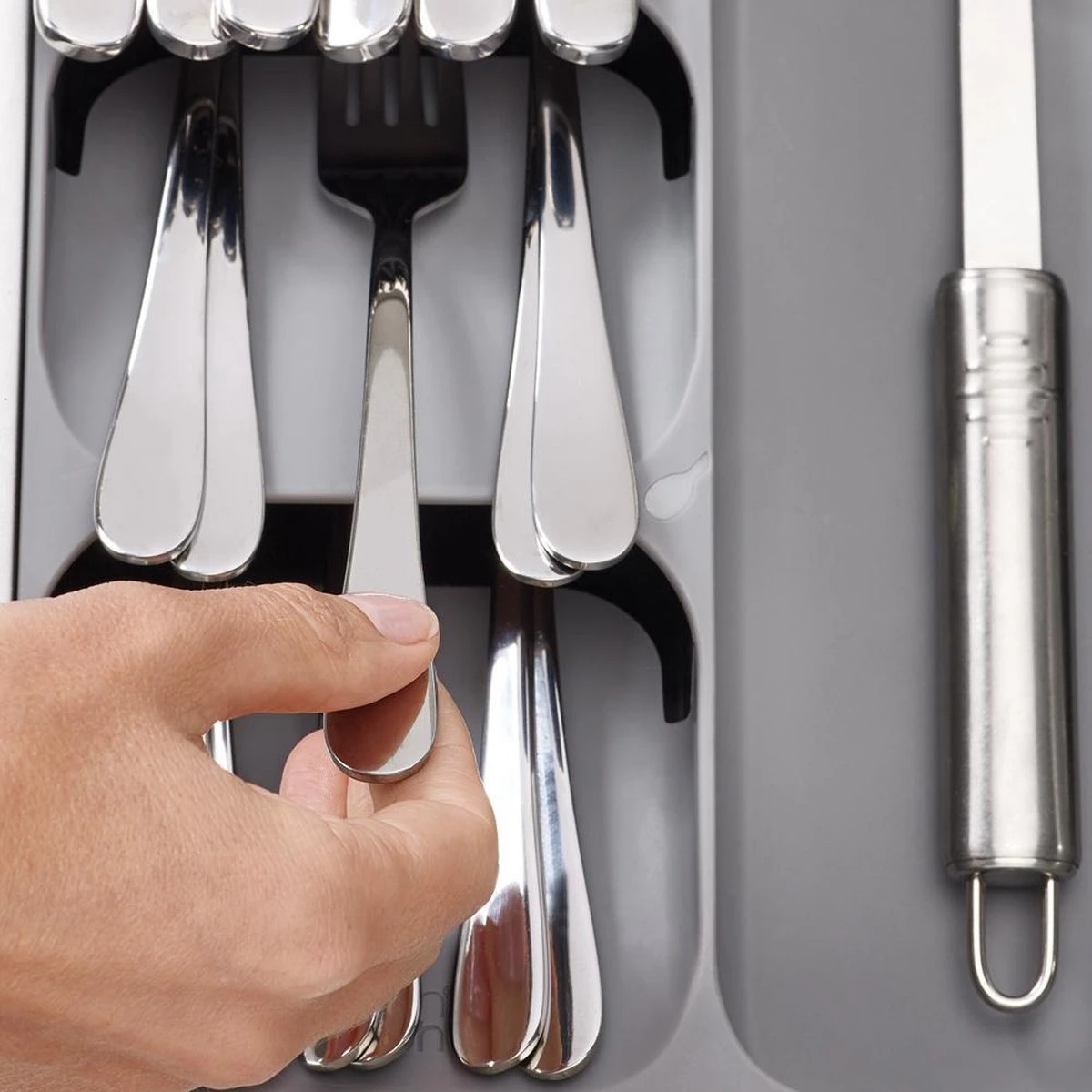 Al je bestek handig op één plek met deze bestekbak van het merk Joseph Joseph. Door het unieke design van deze keukenlade organizer creëer je extra ruimte om al je bestek, keukengerei en keukenaccessoires netjes te sorteren. Het stijlvolle design past goed bij iedere keuken.