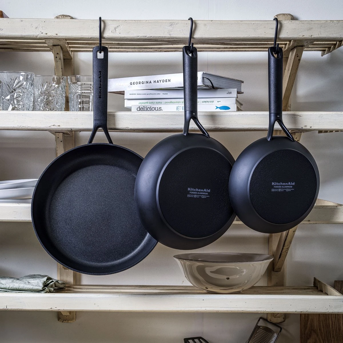 Kookfanaten die een tijdloze uitstraling verkiezen, zullen dol zijn op de Classic Forged Aluminium-collectie van KitchenAid. Het strakke, zwarte design en de zuivere lijnen zijn subtiel en toch bijzonder. Een mooie aanvulling voor elke keuken!