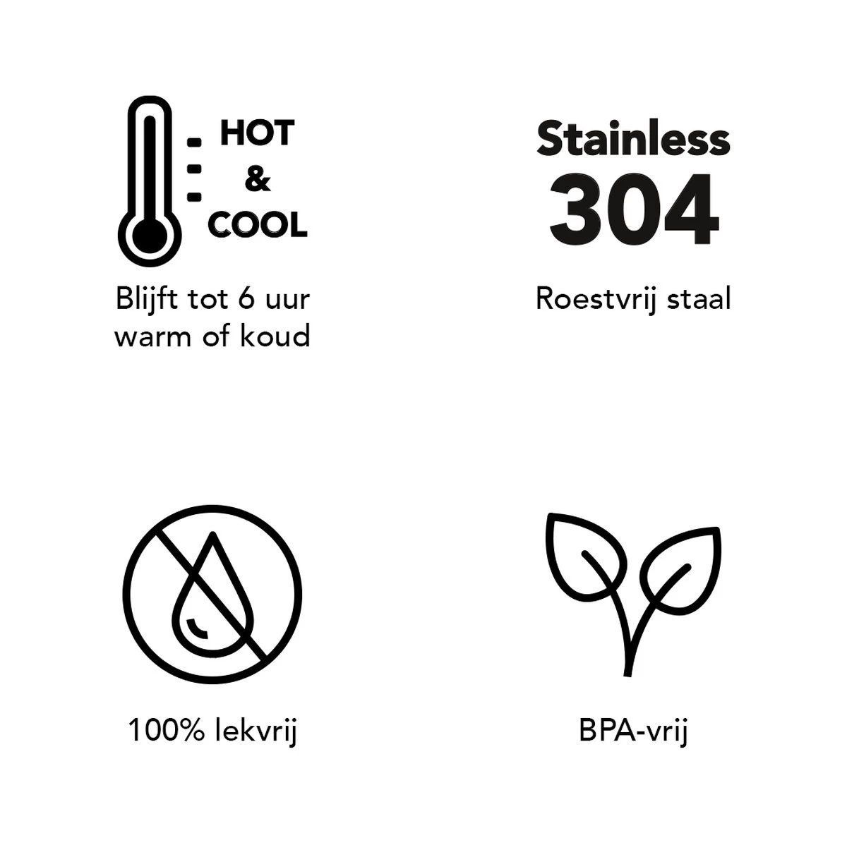 De roestvrijstalen wand aan zowel de binnen- als de buitenkant en de speciale koperen coating zorgen ervoor dat eten en drinken 4 tot 6 uur warm of koud blijft.