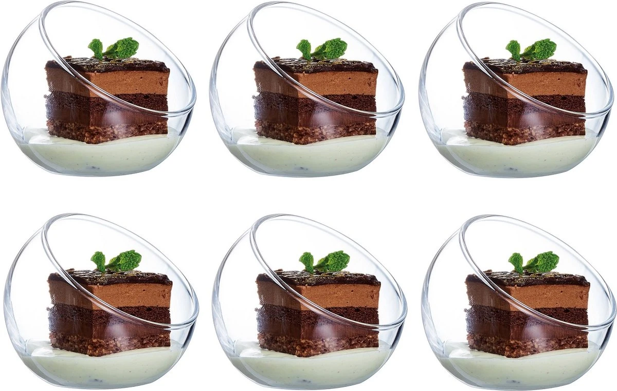 6 Versatile amuseglaasjes van 4 cl met een prachtig hedendaags en origineel ontwerp. Alweer een geweldig idee van Luminarc! De aperitiefschaaltjes zijn bestand tegen de vaatwasser.