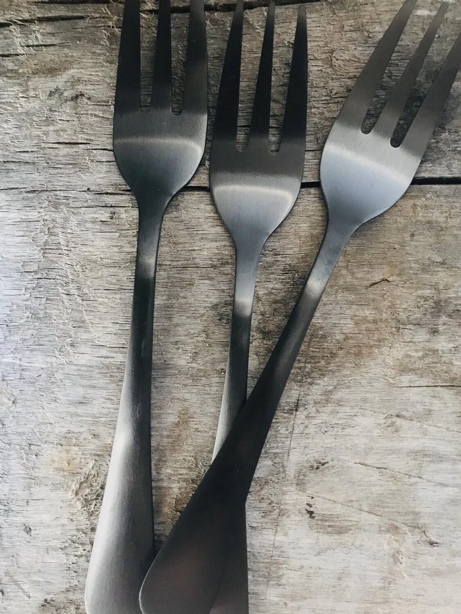 Ook in de tafelsetting kan je met ons bestek goed combineren en een eigen sfeer creëren. Hou je meer van modern? Combineer zwart dan met andere metaaltinten zoals staal, goud en zilver. Dit geeft naast een luxe ook een stoere en industriële uitstraling. Hou je juist meer van landelijk? Combineer zwart dan met houten accessoires. Het vorkje heeft een matte afwerking.