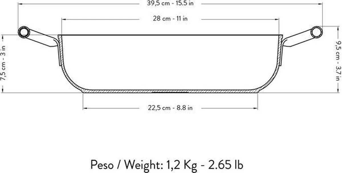 Dit formaat met een diameter van 28 cm. is ideaal voor de meeste gerechten en voor zowel kleinere als grotere porties. Op aanvraag is ook een kleinere versie van 24 cm. leverbaar.