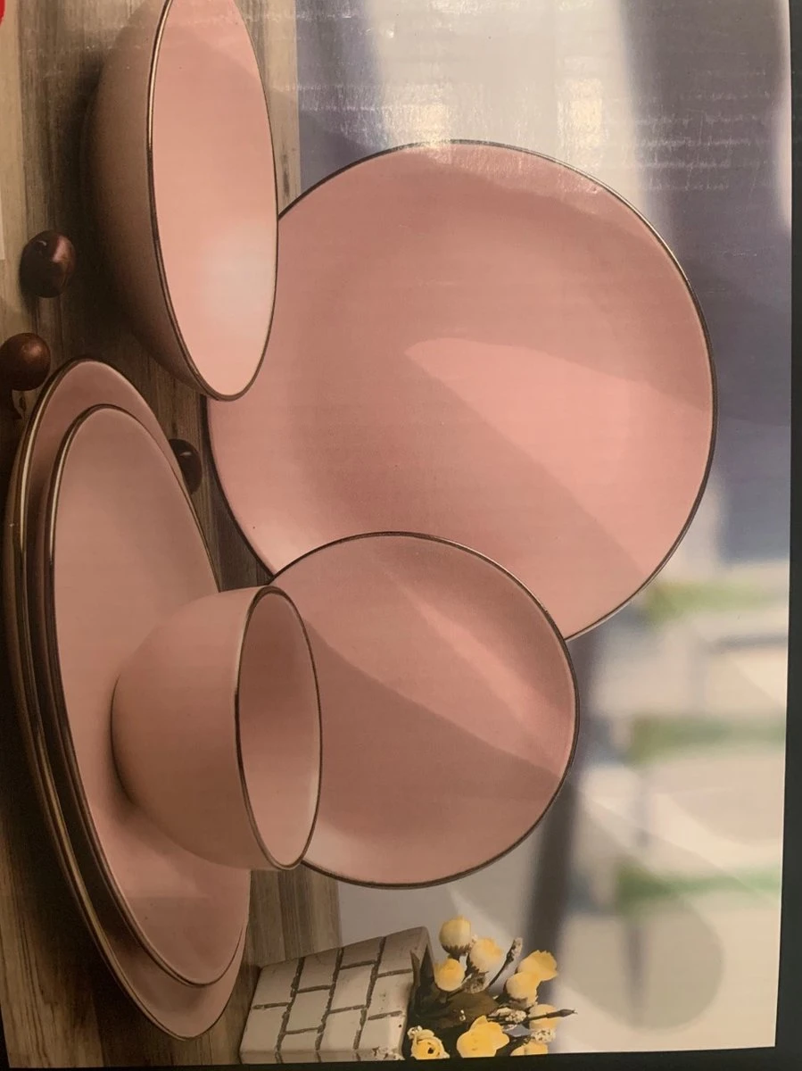 Maak van elk etentje een speciale geelegenheid met deze 26 delig rose servies set met een goud randje