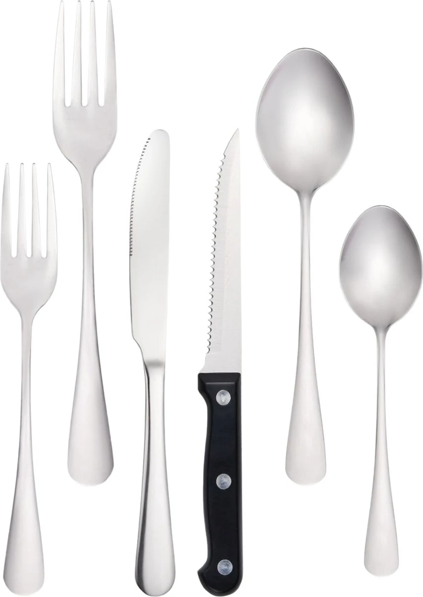 - Inhoud verpakking: Bestekset 6 persoons 36-delig; 6x Tafelmes, 6x Steakmes, 6x Tafellepel, 6x Dessertlepel, 6x Tafelvork groot, 6x Tafelvork klein