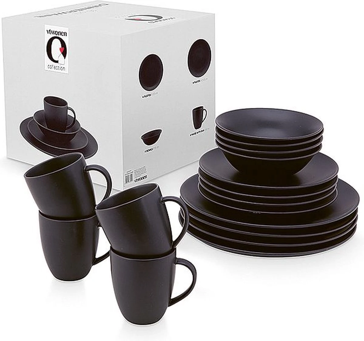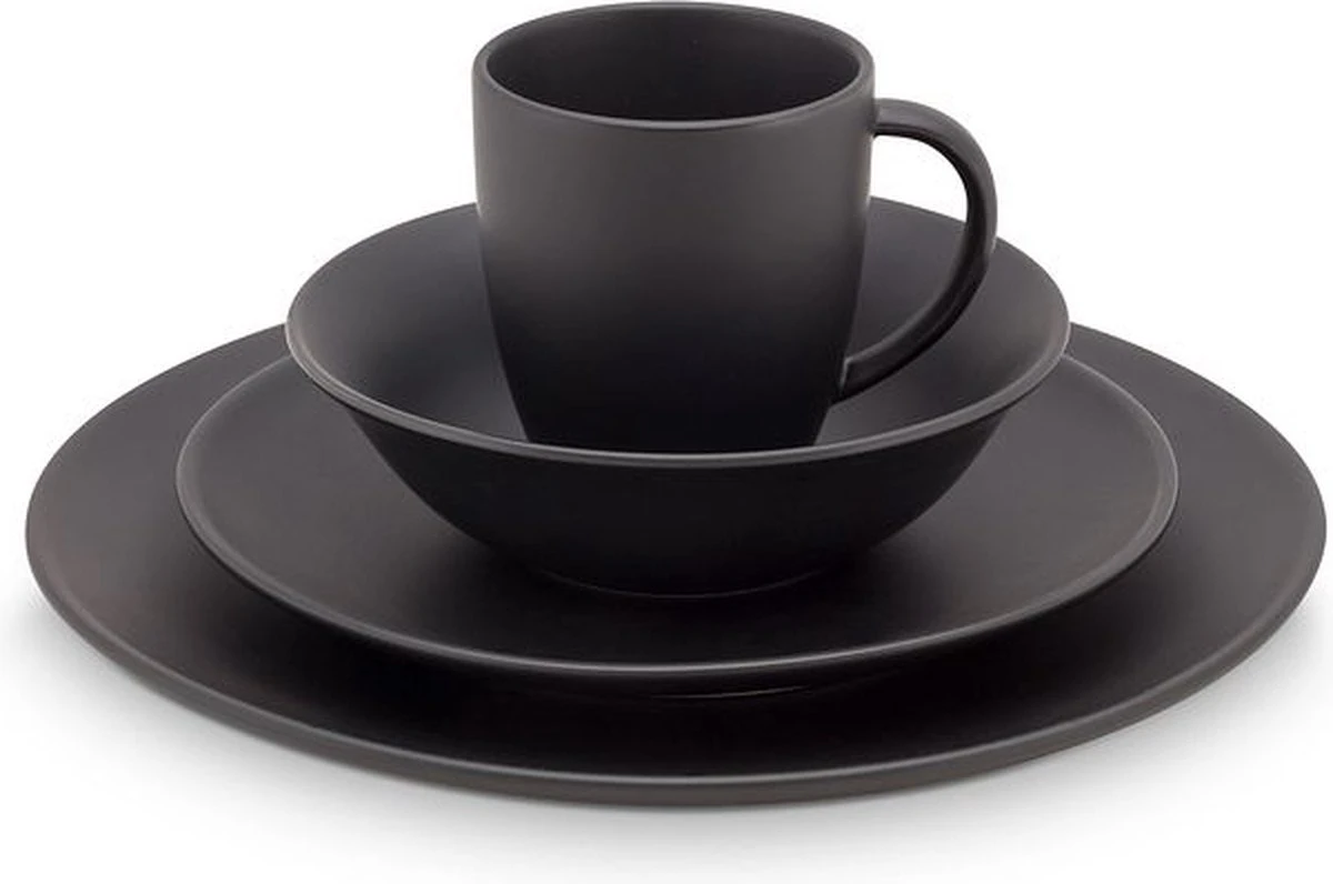 vtwonen Serviesset – Mat Zwart – Porselein – 16-Delig